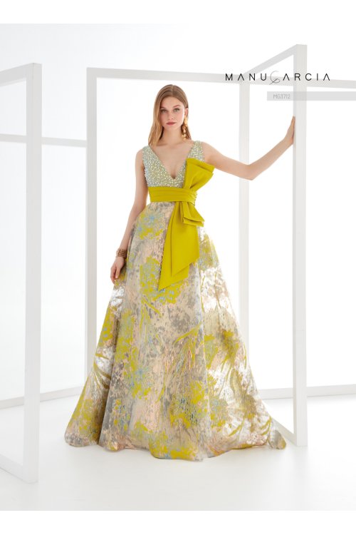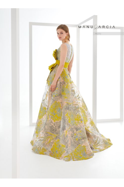 Vestido crepe saten. tul pedreria y organza